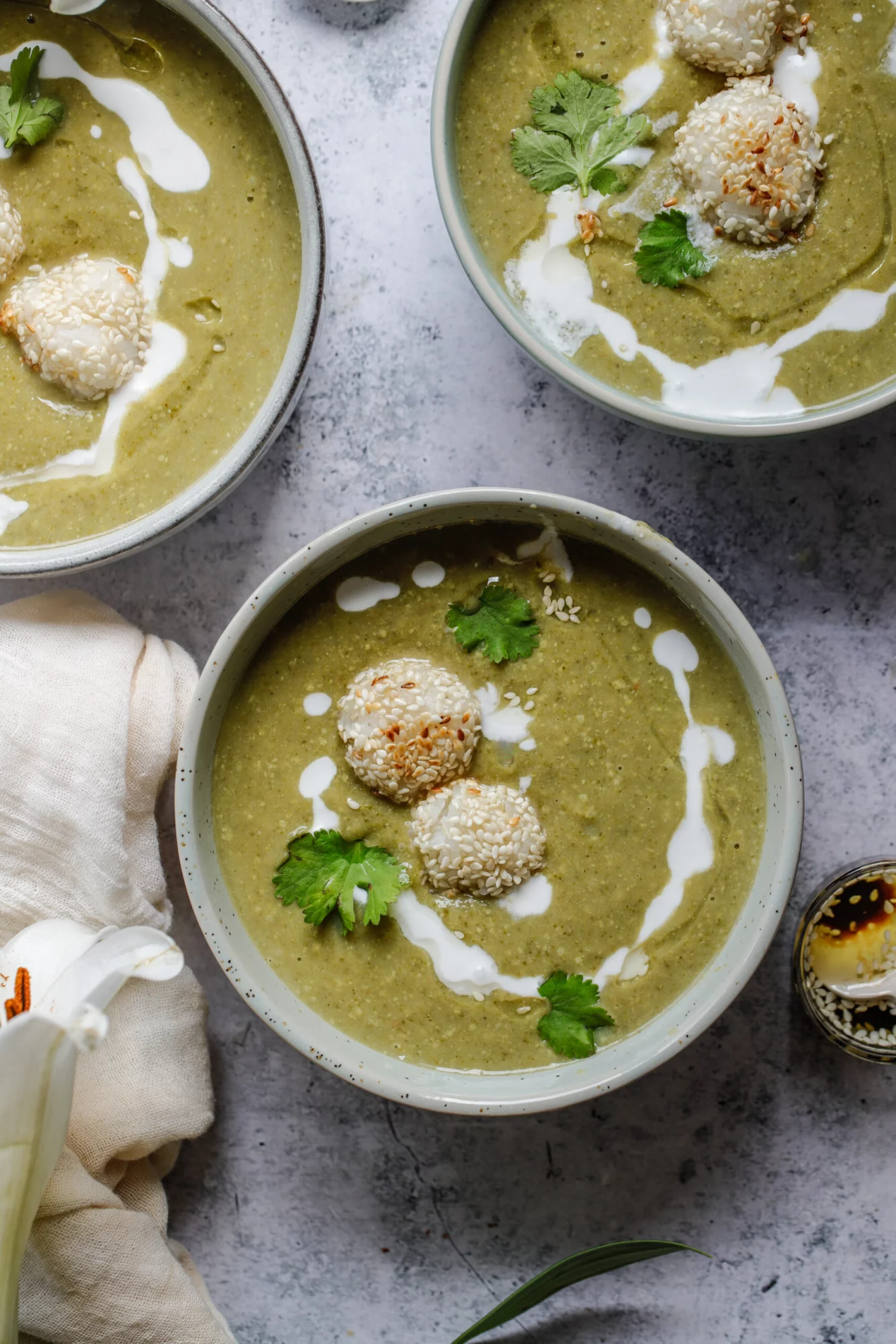 4. Serve the soup with more coconut cream, jasmine rice balls & fresh cilantro.
