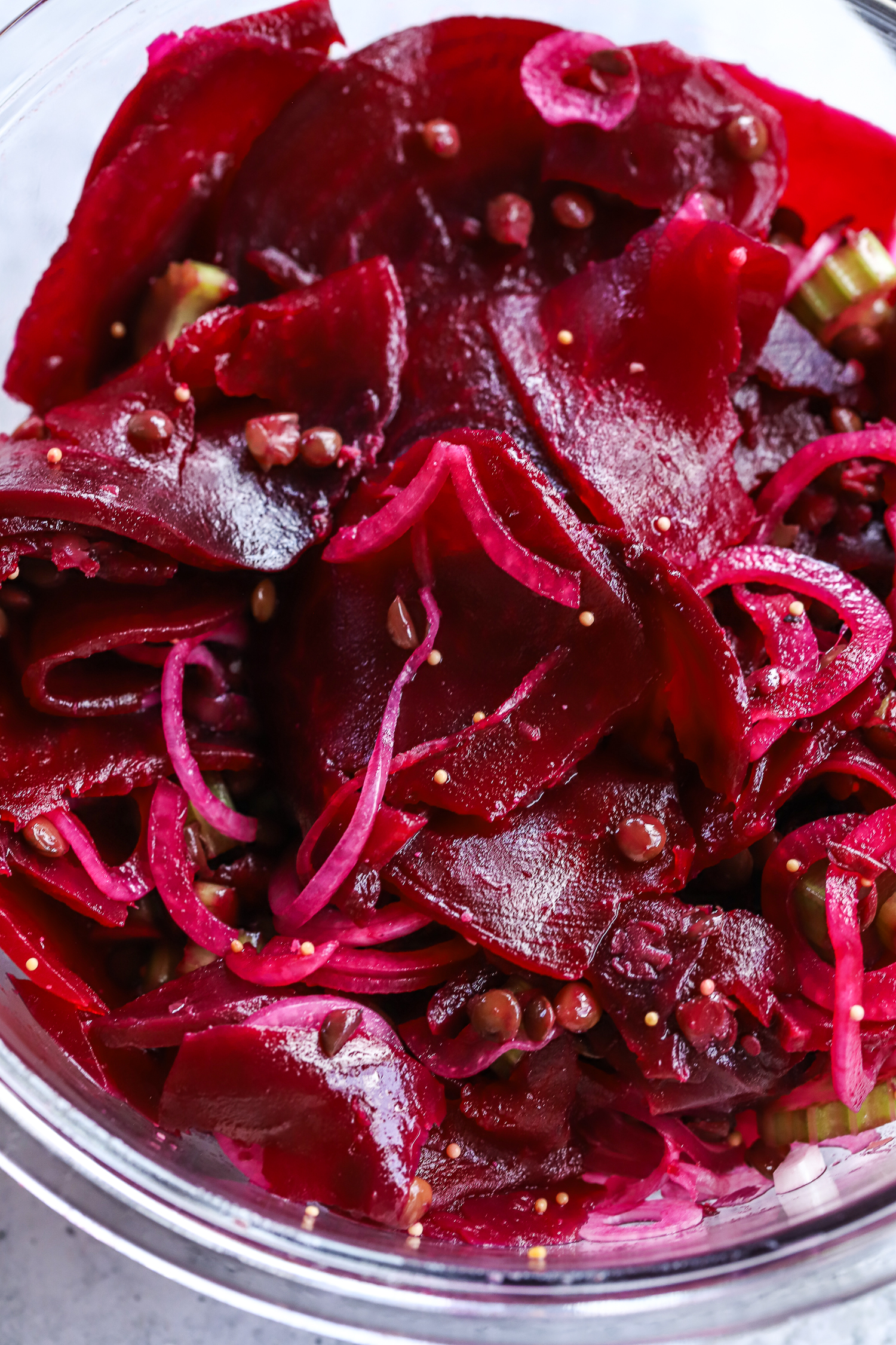 Beet red onion lentil salad