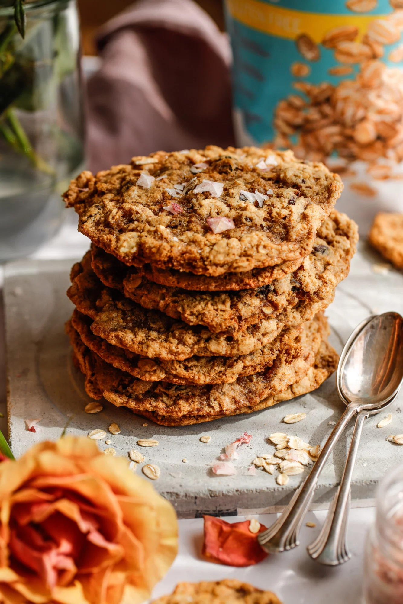 6. Add in rolled oats and raisins and stir them into the cookie dough.