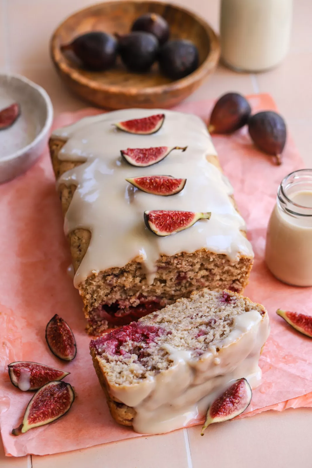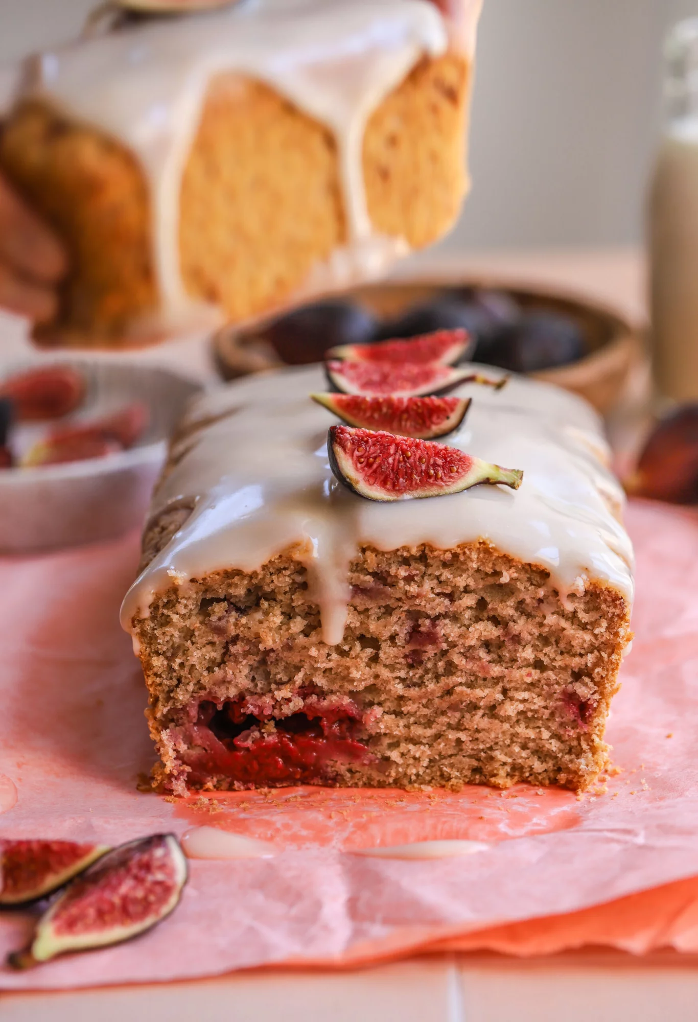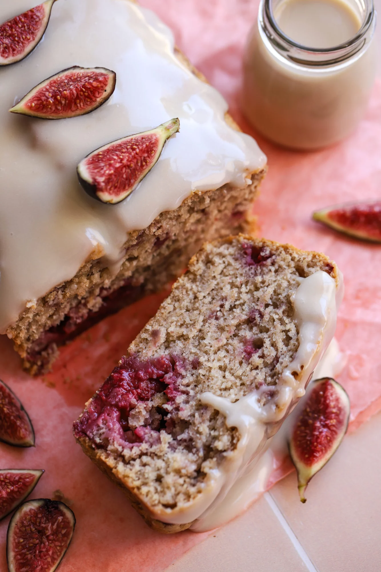 - Frost the cake with the icing and then decorate with sliced figs or more raspberries. serve and enjoy!